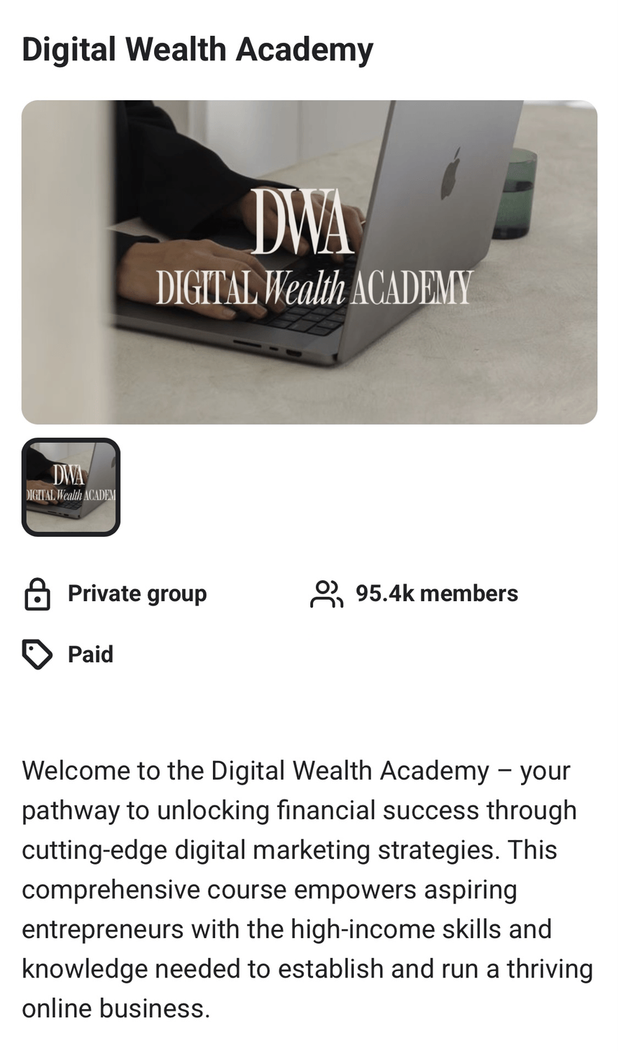 Learn how to promote The DWA course or any other product. This will teach you how to quickly grow your audience and make sales via social media marketing.